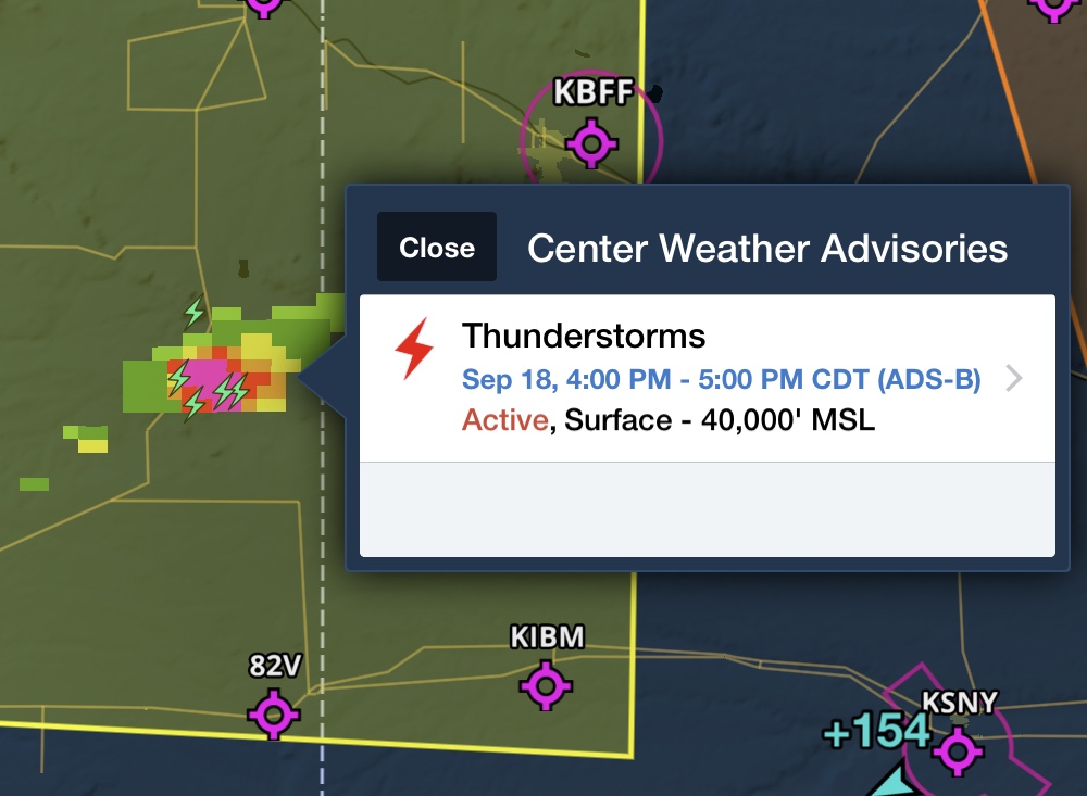 Get even more value out of your ADS-B receiver investment. ForeFlight now supports four new ADS-B weather products: Turbulence, Lightning, Cloud Tops, and Center Weather Advisories (CWAs). Look for the new layers next time you fly with a compatible ADS-B receiver like Sentry or Scout.