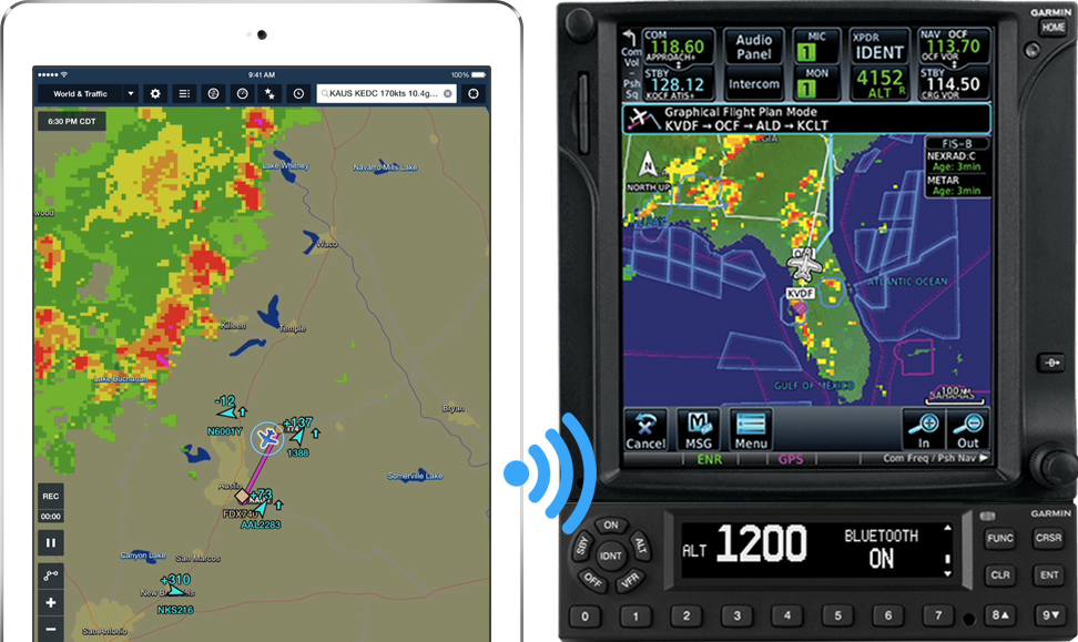 Integration between ForeFlight and Garmin avionics enables wireless two-way flight plan transfer, and delivers ADS-B weather, traffic, dynamic pitch and bank, and GPS information to your iPad and iPhone. For SiriusXM subscribers, ForeFlight integrates with the Garmin GDL 51 and 52 portable units to provide nationwide weather products on ForeFlight.