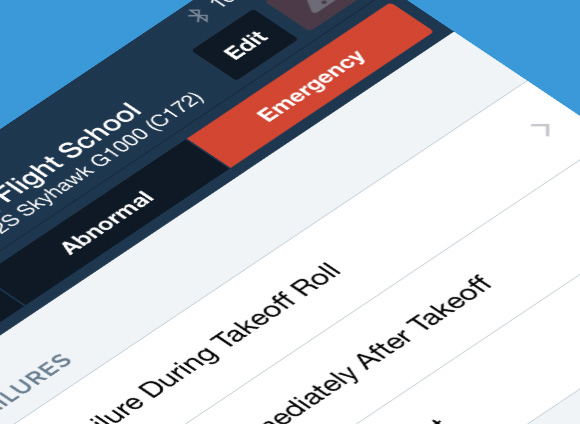 The emergency button immediately takes you to your aircraft’s emergency checklist procedures, saving you time and sparing you the hassle of flipping through paper in a time-critical situation.