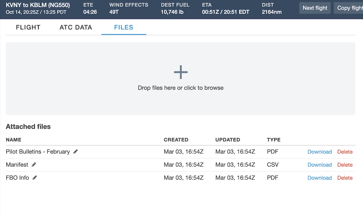 Easily upload custom documents to flights right from Dispatch to deliver them to assigned crew members in seconds. Attach PDFs, images, Microsoft Word documents, and many other file types to make them accessible right in ForeFlight for viewing and printing before the flight.