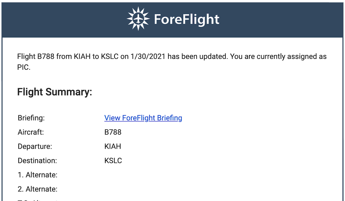 Automated emails keep crew members up to speed with new or updated flight plan information.