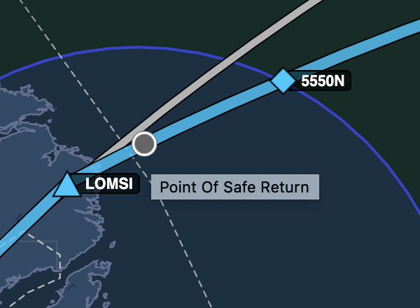 Quickly identify a route's “point of safe return” on both the inset route map and in the Navlog.