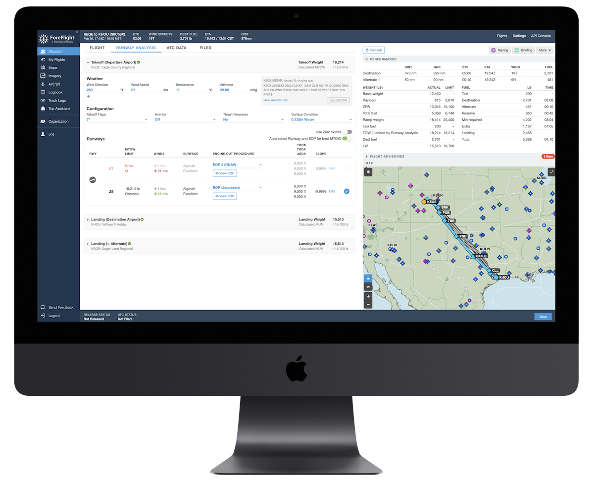 ForeFlight's new Runway Analysis product is seamlessly integrated into Dispatch's flight planning workflow, allowing flight planners and pilots to incorporate these essential calculations into their flight plans and release the results to assigned crew members. Dispatch provides even more robust automation features than the mobile app, such as a checkbox to automatically select the optimal runway and EOP to maximize takeoff weight, as well as a mini-map for viewing each EOP's ground track.