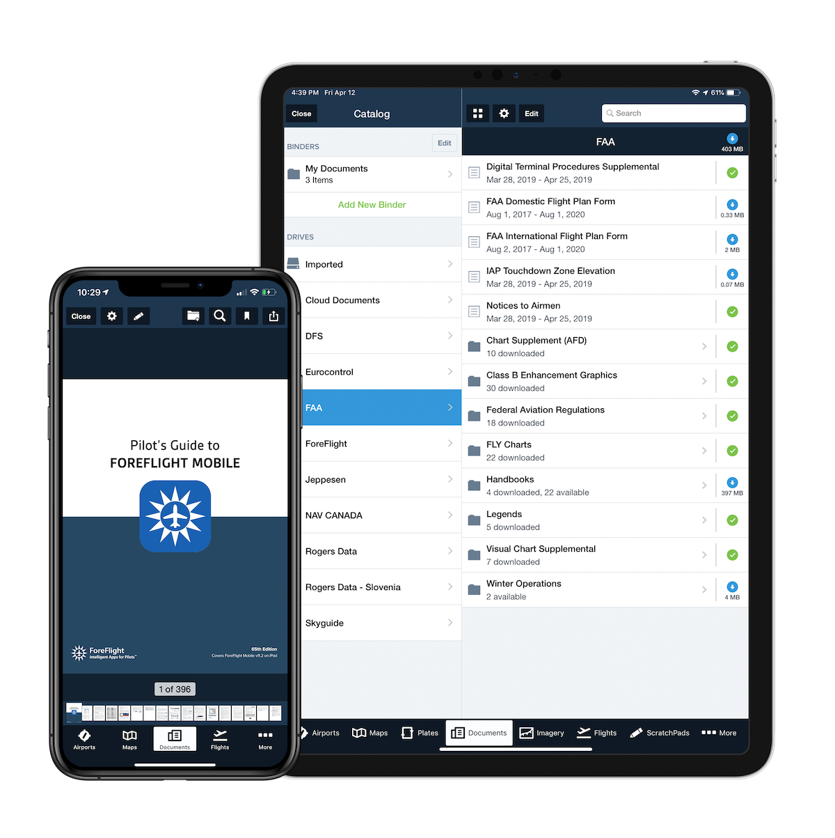 Download individual documents, folders, or entire drives, and ForeFlight will automatically update them when new versions or documents become available.
