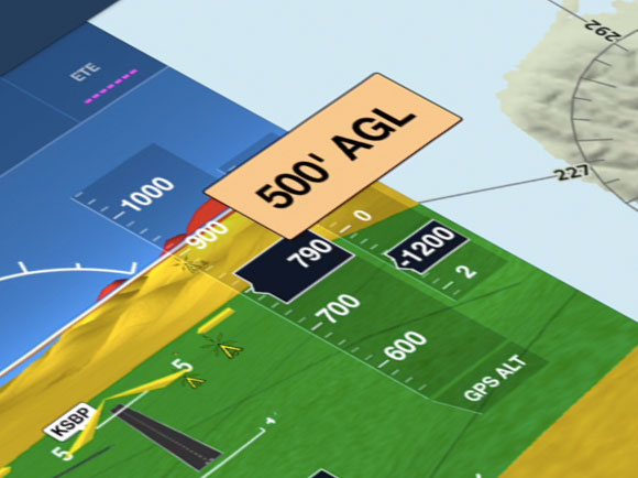 Hazard avoidance features highlight hazardous terrain and obstacles near your aircraft's GPS location.