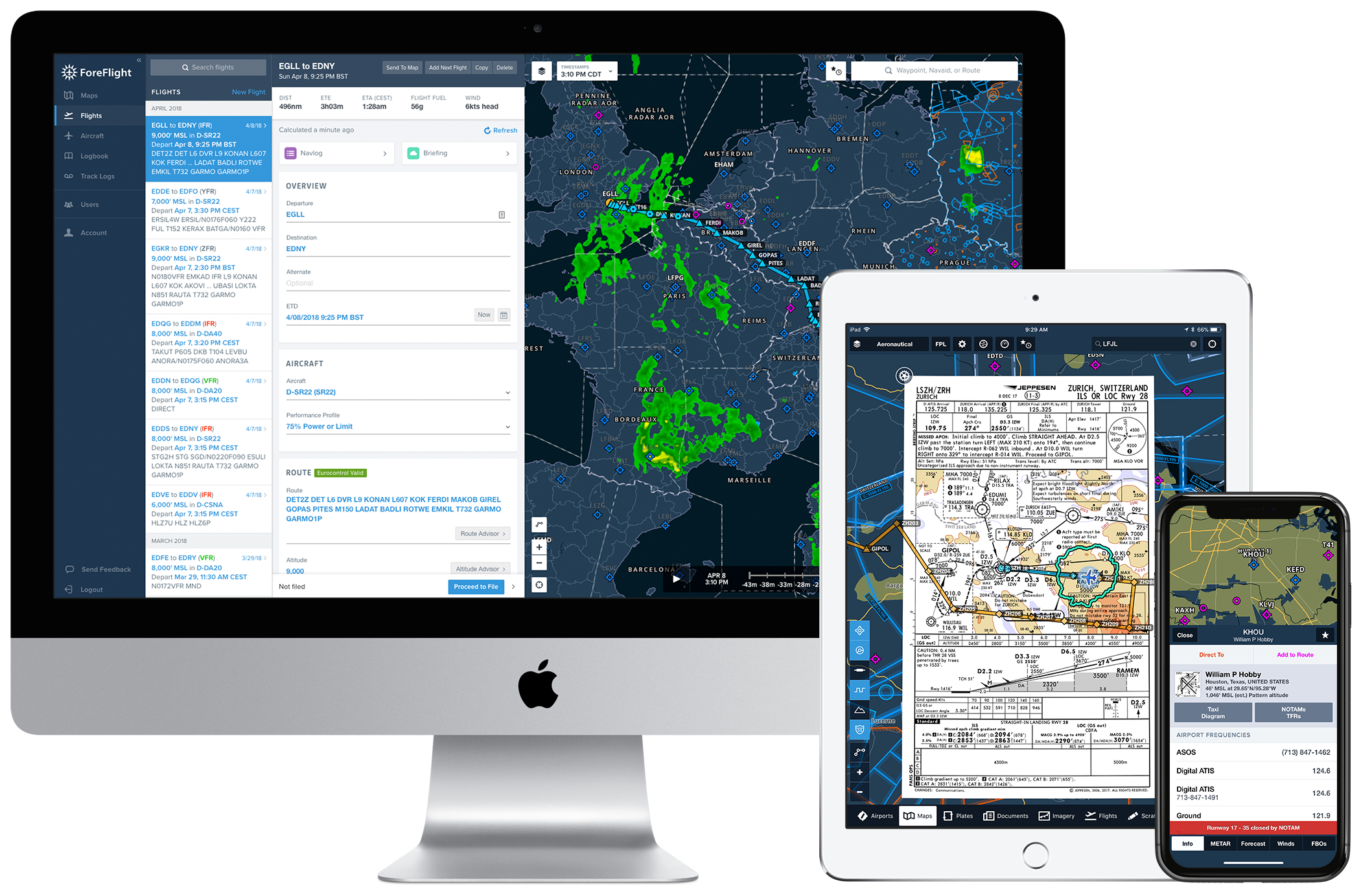ForeFlight provides access to a full library of always-current VFR, IFR, and data-driven map layers projected onto a 3D representation of the world.