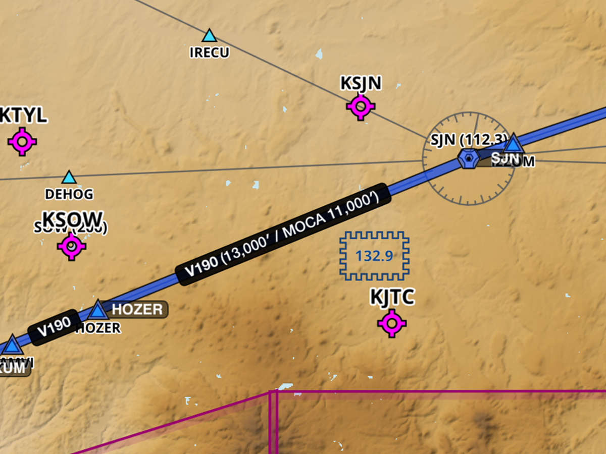 Smart Airway Labels make efficient use of the space between waypoints on an airway. As you zoom in, the labels dynamically expand to display additional information.