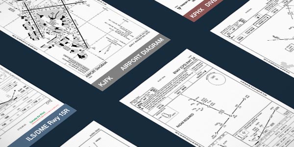 FAA, NAVCANADA, and Jeppesen procedure charts, including: departures, arrivals, terminal procedures, and airport diagrams.