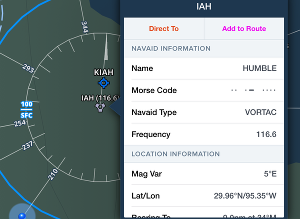Simply tap on any Aeronautical Map element – VORs, airways, airports – to view detailed information about that element.