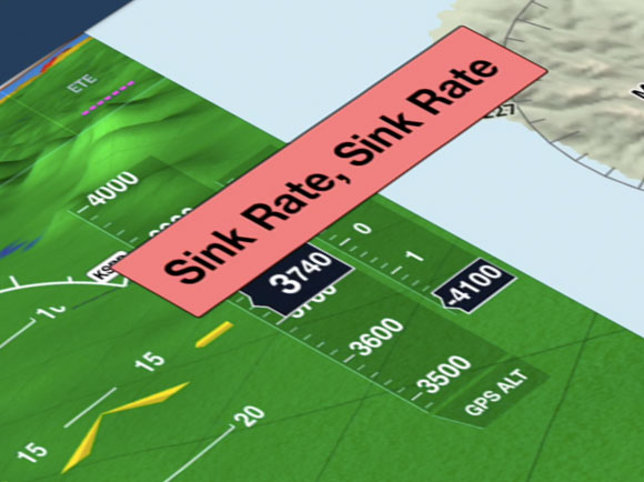 In an emergency situation, the Sink Rate Alert warns you of an excessive descent rate.
