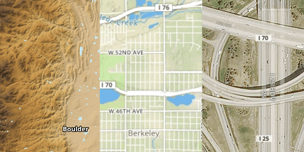 A selection of surface map layers help you get oriented with terrain, country boundaries, rivers, lakes, and cities.