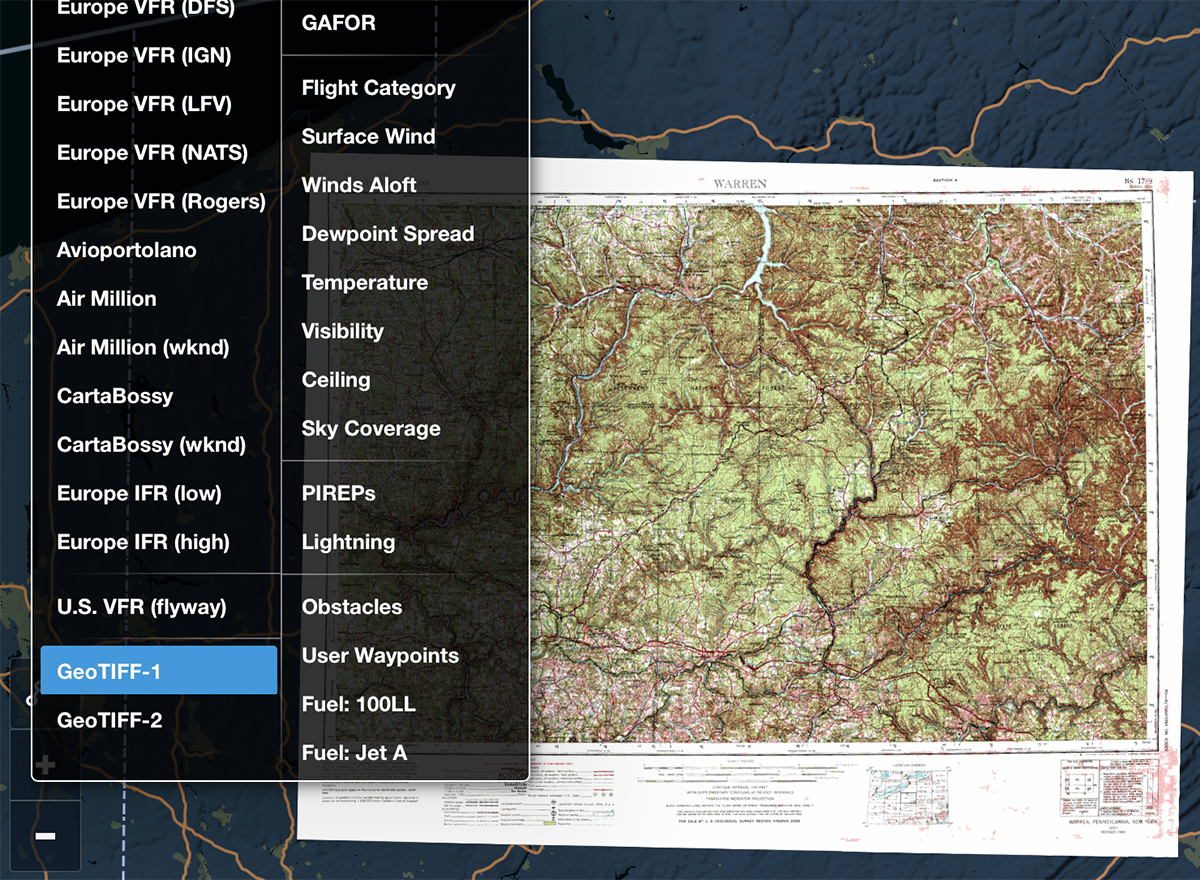 Easily import and manage a variety of custom data types via remote sideloading, email attachment, AirDrop, or hyperlink. Bulk import user waypoints, create custom overlays with KML geographic shapefiles, or bring your own geo-referenced charts to ForeFlight with support for GeoTIFF, GeoPDF, and MBTiles open source file types.