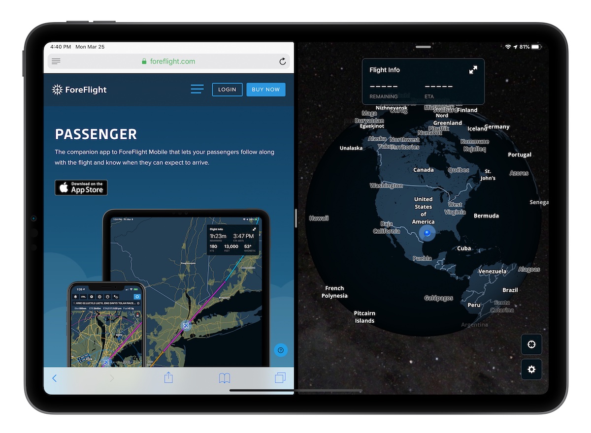 Passenger supports multitasking on iPad, allowing you to overlay the app in a small window on top of another app using Slide Over, or open it alongside another app in Split View.