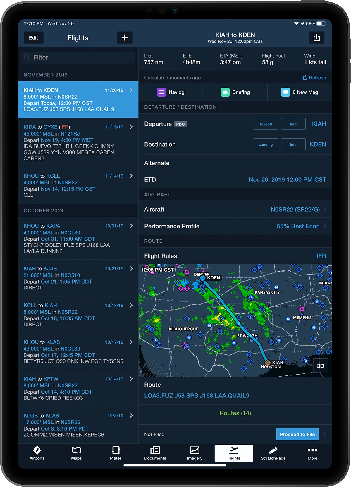 Access ForeFlight’s powerful mobile flight planning online or offline. Great for rerouting in the air or when you don’t have access to an internet connection.