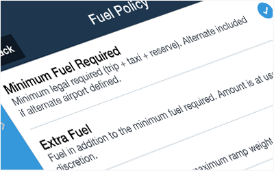 Flexible fuel planning offers a variety of fuel strategies. Need to land with a specific quantity of fuel? Use Landing Fuel policy to quickly calculate block fuel for that outcome.