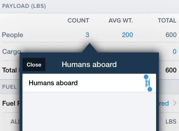 Easily add payload information and modify reserve fuel amounts in the neatly organized form-based Flights view. The trip summary pinned to the top of the view continuously updates as you make adjustments.