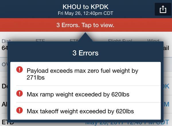 Automatic structural weight limit checks, with visual alert feedback, eliminate an overweight takeoff or landing scenario.