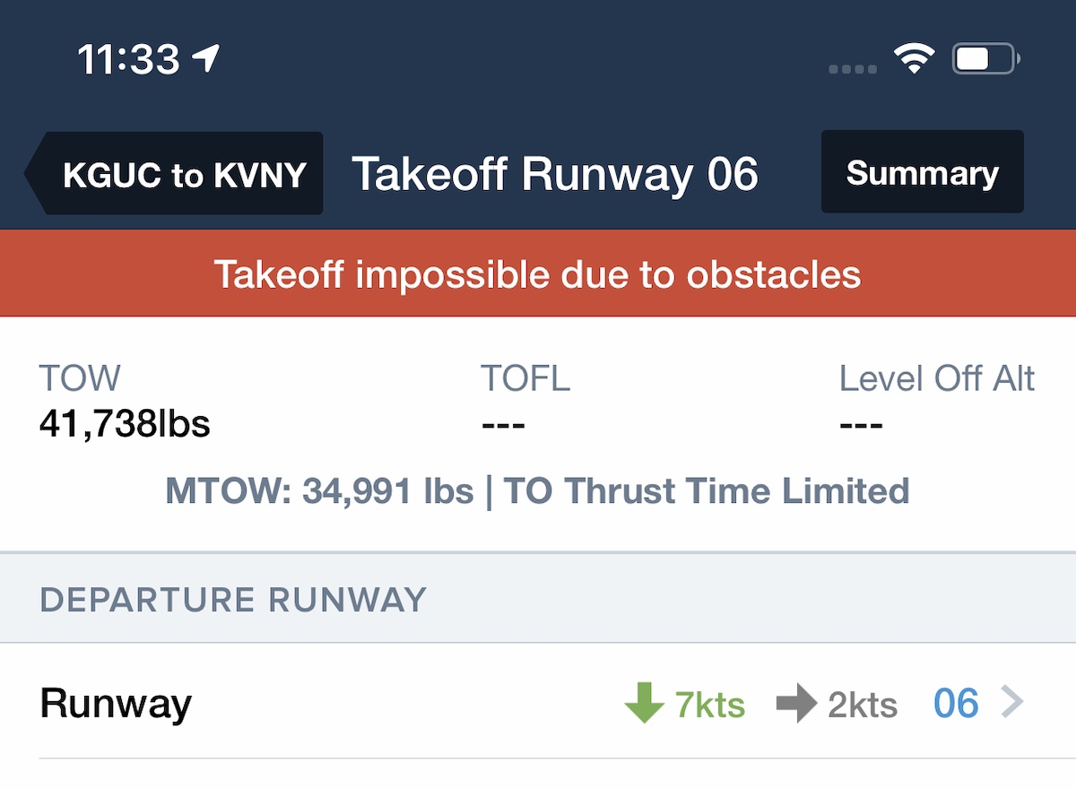 At the heart of ForeFlight Runway Analysis is the complex Obstacle Analysis, which incorporates terrain and obstacles into its max takeoff weight calculations to guarantee clearance.