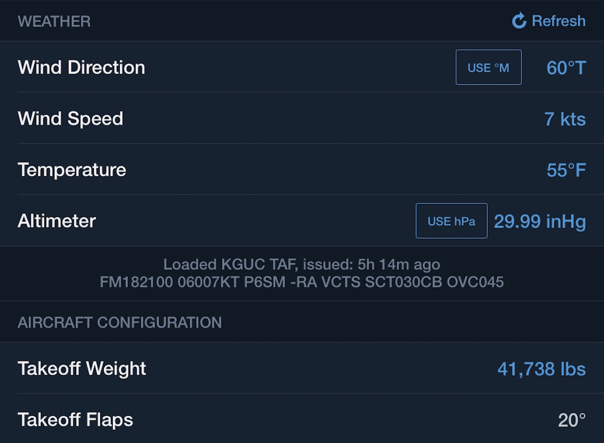 ForeFlight provides a number of warning and error messages to let you know when the calculated results exceed the aircraft’s or runway’s limits, including aircraft-specific alerts for invalid takeoff or landing configurations or overweight warnings.